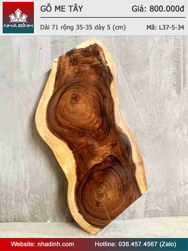 Mặt Bàn Gỗ Me Tây Nguyên Khối Dài 71 Rộng 35 Dày 5 (cm)