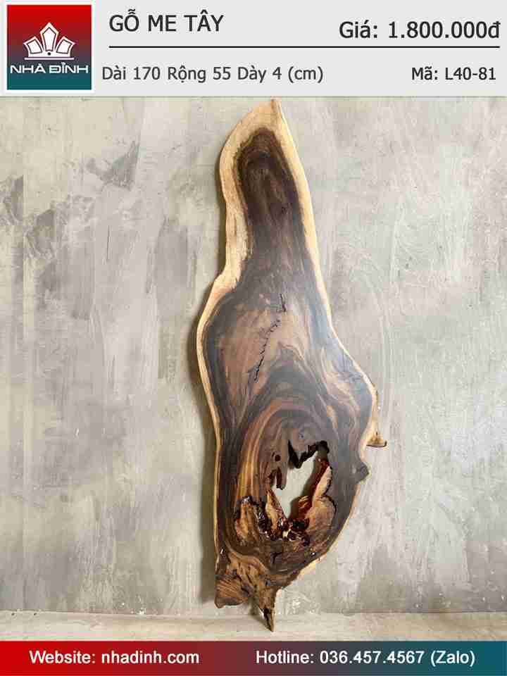 Mặt Bàn Gỗ Me Tây Nguyên Khối Dài 170 Rộng 55 Dày 4 (cm)