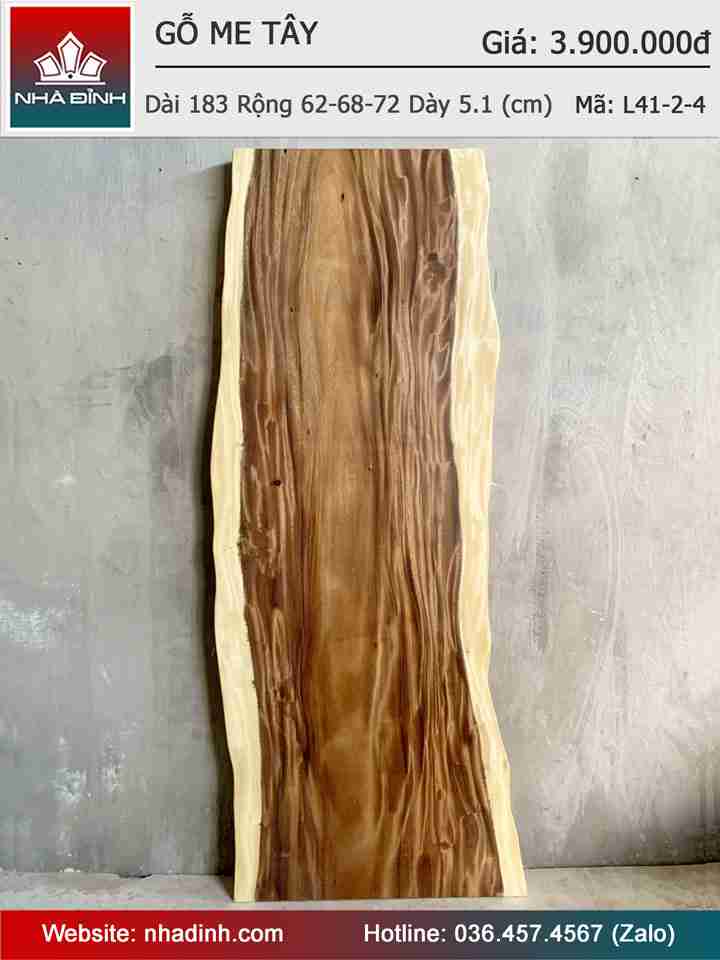 Mặt Bàn Gỗ Me Tây Nguyên Khối Dài 183 Rộng 62-68-72 Dày 5.1 (cm)