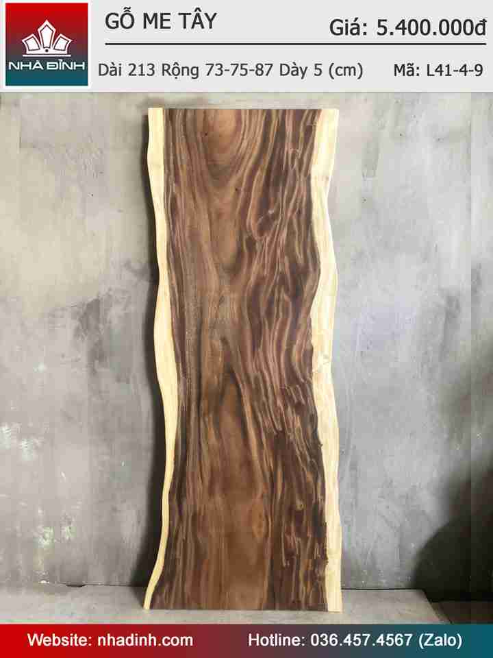Mặt Bàn Gỗ Me Tây Nguyên Khối Dài 213 Rộng 73-75-87 Dày 5 (cm)