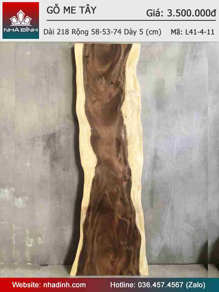 Mặt Bàn Gỗ Me Tây Nguyên Khối Dài 218 Rộng 58-53-74 Dày 5 (cm)