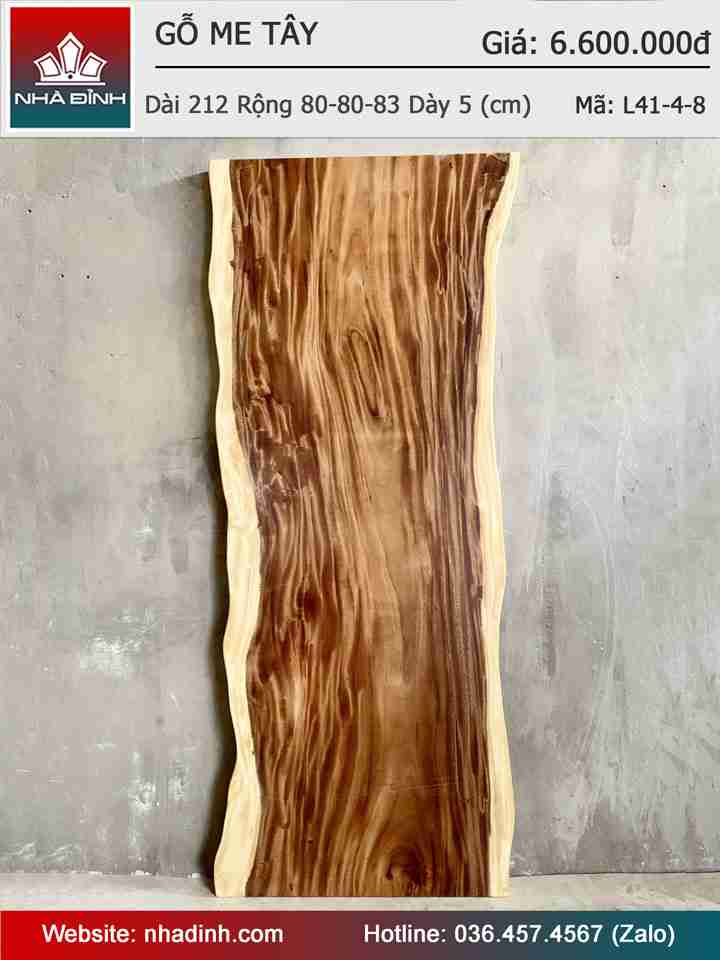 Mặt Bàn Gỗ Me Tây Nguyên Khối Dài 212 Rộng 80-80-83 Dày 5 (cm)