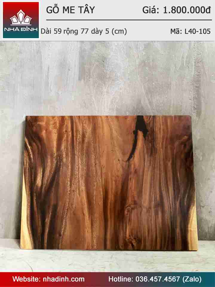 Mặt Bàn Gỗ Me Tây Nguyên Khối Dài 59 Rộng 77 Dày 5 (cm)