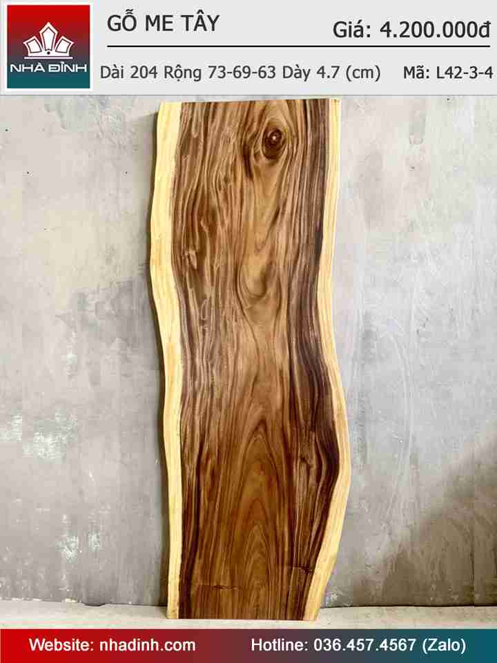 Mặt Bàn Gỗ Me Tây Nguyên Khối Dài 204 Rộng 73-69-63 Dày 4.7 (cm)