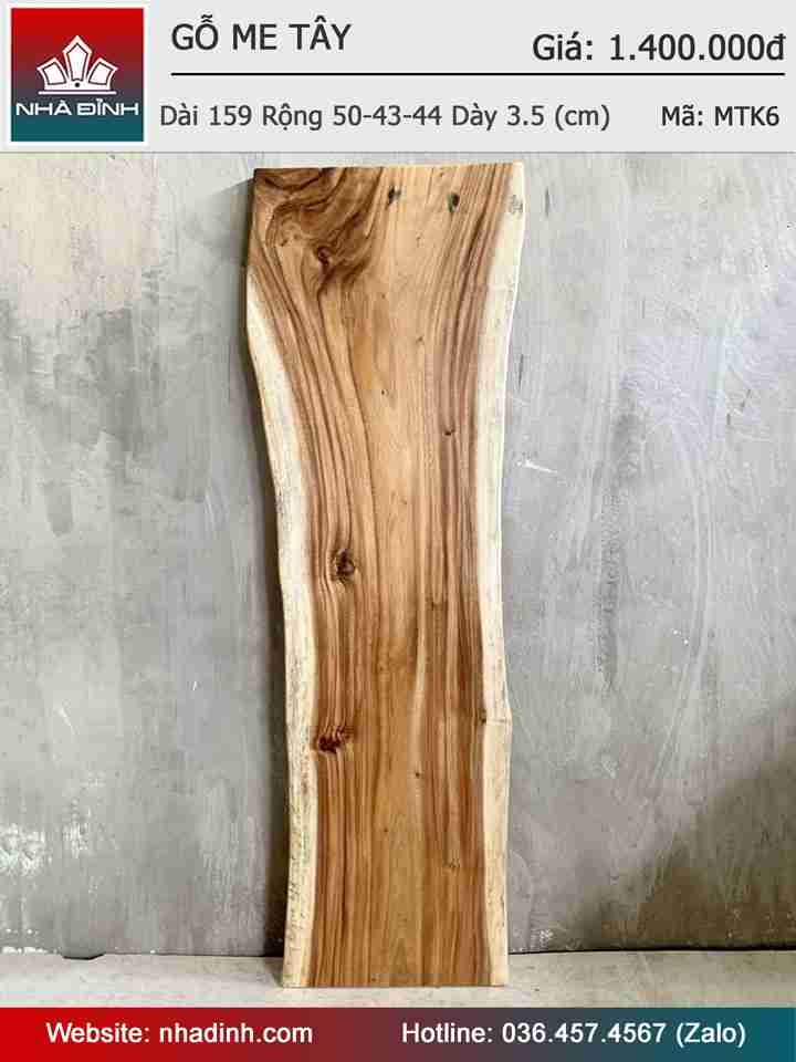 Mặt Bàn Gỗ Me Tây Nguyên Khối Dài 159 Rộng 50-43-44 Dày 3.5 (cm)