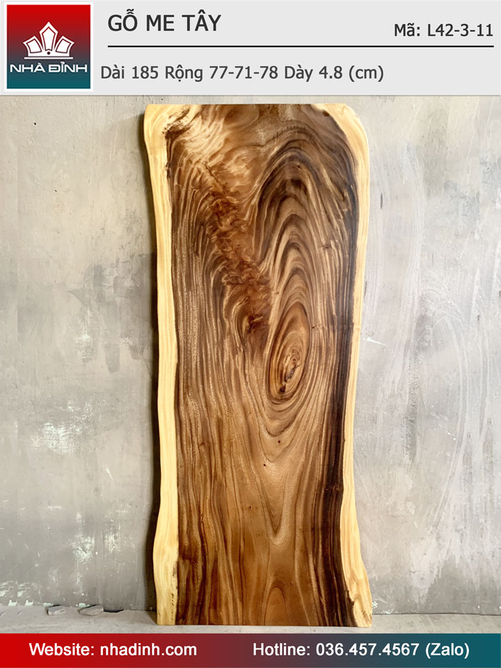 Mặt Bàn Gỗ Me Tây Nguyên Khối Dài 185 Rộng 77-71-78 Dày 4.8 (cm)