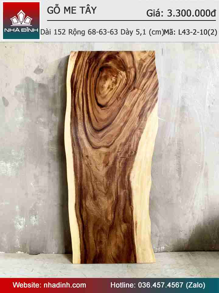 Mặt Bàn Gỗ Me Tây Nguyên Khối Dài 152 Rộng 68-63-63 Dày 5.1 (cm)