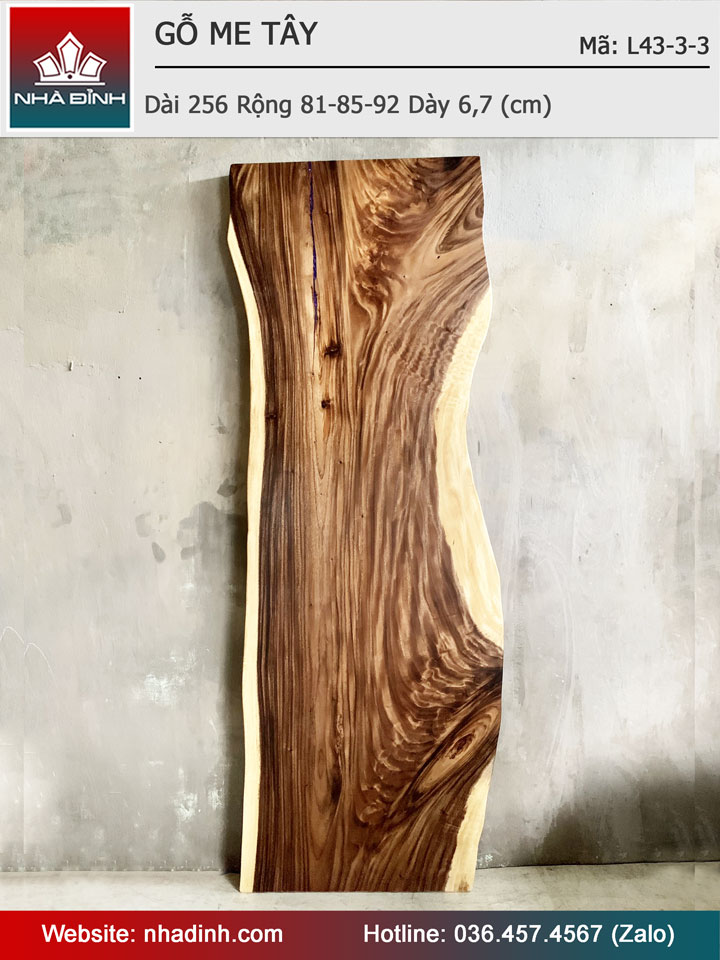 Mặt Bàn Gỗ Me Tây Nguyên Khối Dài 255 Rộng 81-85-92 Dày 6.7 (cm)