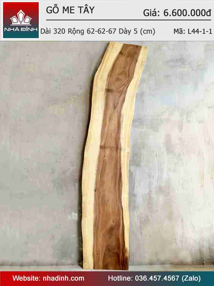 Mặt Bàn Gỗ Me Tây Nguyên Khối Dài 320 Rộng 62-66-67 Dày 5 (cm)