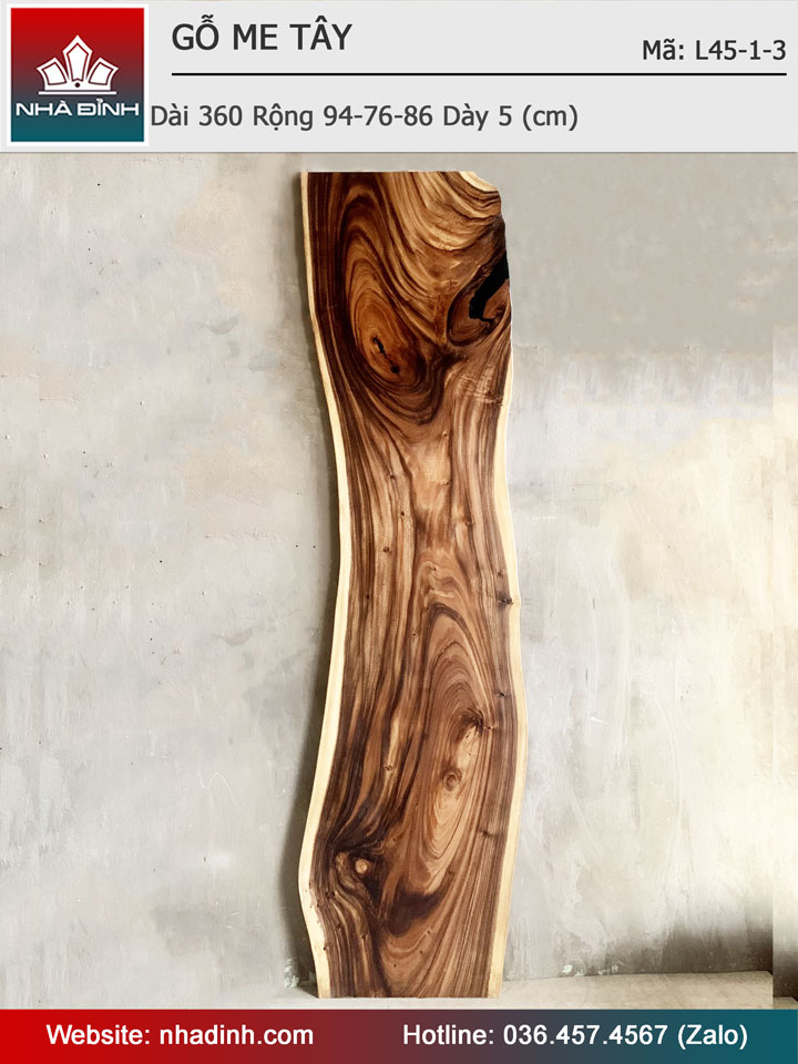 Mặt Bàn Gỗ Me Tây Nguyên Khối Dài 360 Rộng 94-76-86 Dày 5 (cm)