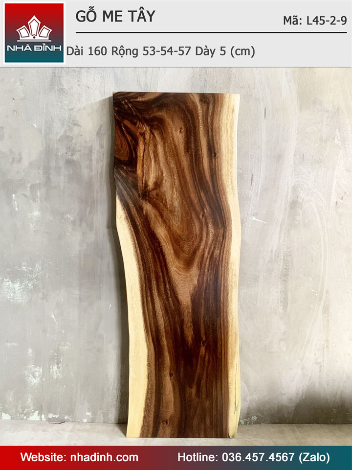 Mặt Bàn Gỗ Me Tây Nguyên Khối Dài 160 Rộng 53-54-57 Dày 5 (cm)