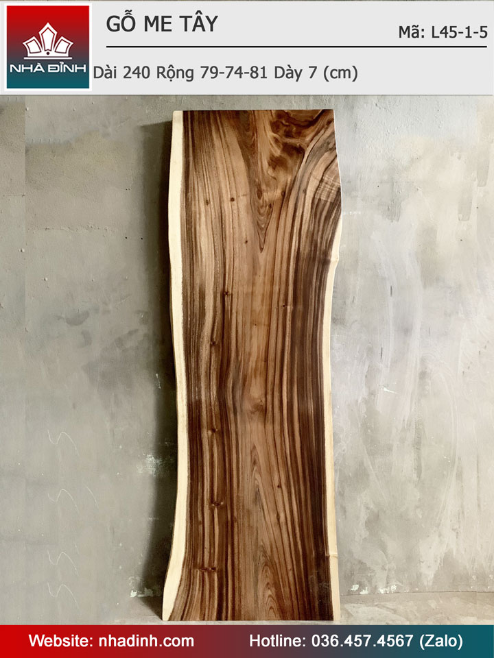 Mặt Bàn Gỗ Me Tây Nguyên Khối Dài 240 Rộng 79-74-81 Dày 7 (cm)