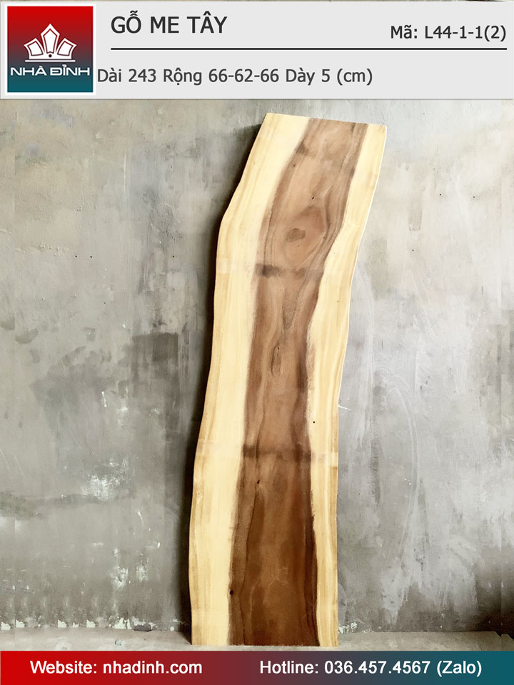 Mặt Bàn Gỗ Me Tây Nguyên Khối Dài 243 Rộng 66-62-66-62 Dày 5 (cm)