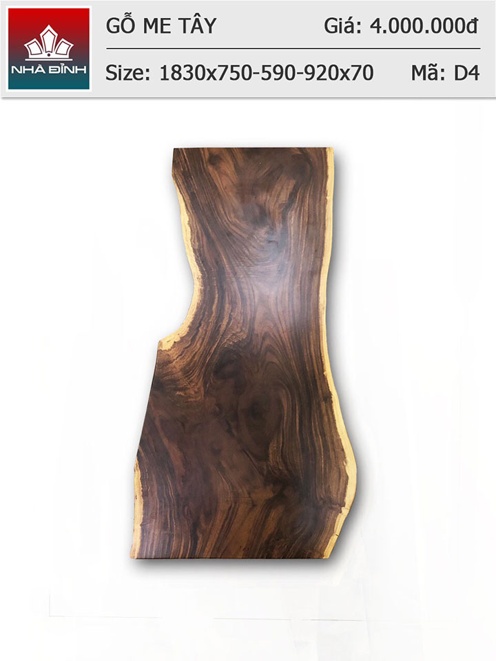 Mặt bàn gỗ Me Tây nguyên khối dài 1m83 rộng 75-59-92 dày 7cm