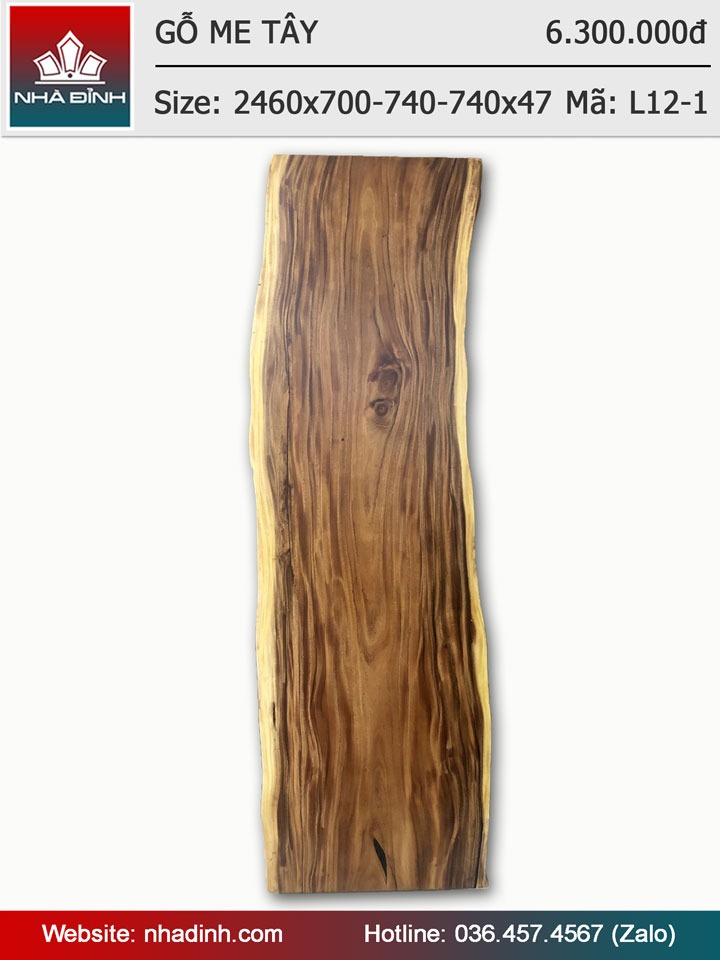 Mặt bàn gỗ Me Tây nguyên khối dài 2460 rộng 700-740-740 dày 47 (mm)