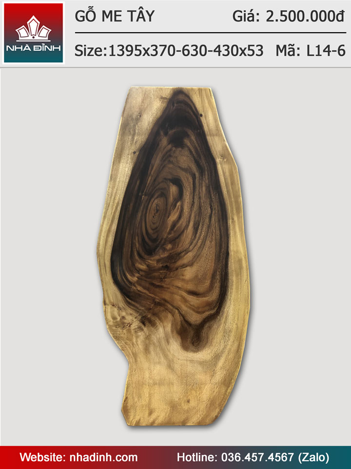 Mặt bàn gỗ Me Tây nguyên khối dài 1395 rộng 370-630-430 dày 53 (mm)