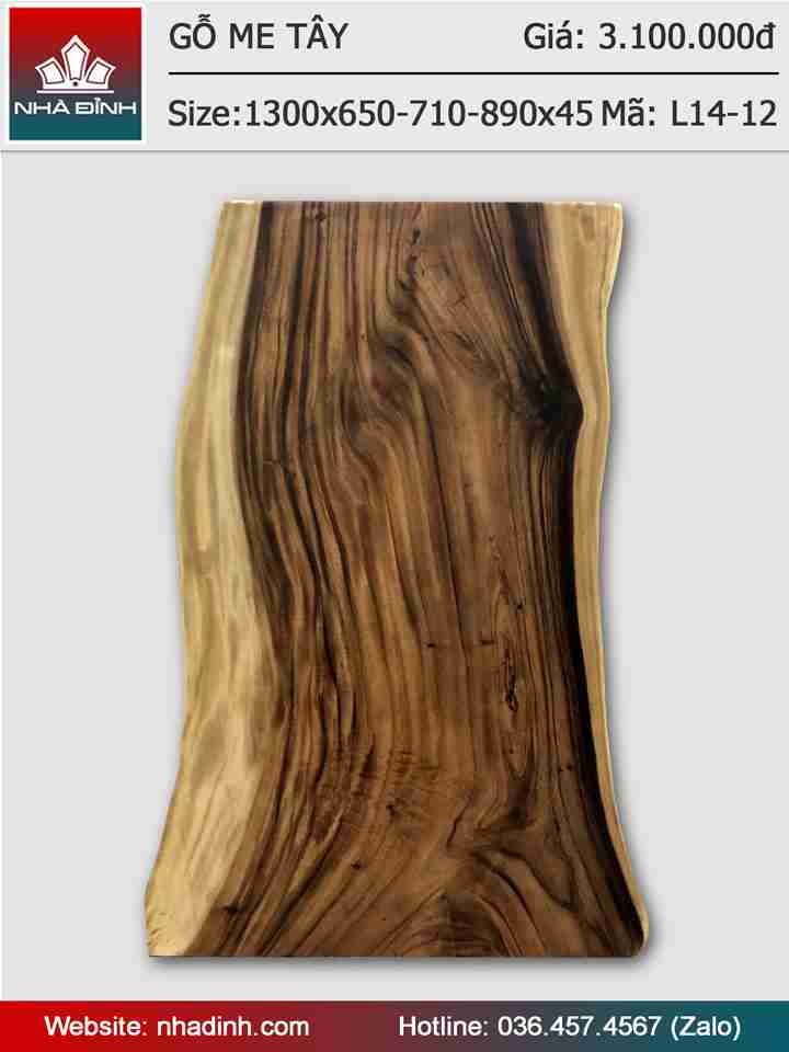 Mặt bàn gỗ Me Tây nguyên khối dài 1300 rộng 650-710-890 dày 45 (mm)