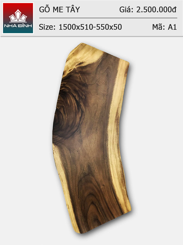 Mặt bàn gỗ Me Tây nguyên khối dài 1m5 rộng 51 - 55 dày 5 (cm)