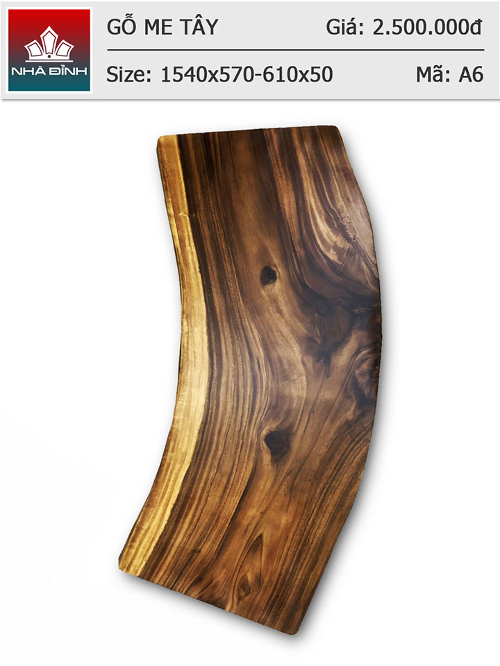 Mặt bàn gỗ Me Tây nguyên khối dài 1m54 rộng 57 - 61 dày 5 (cm)