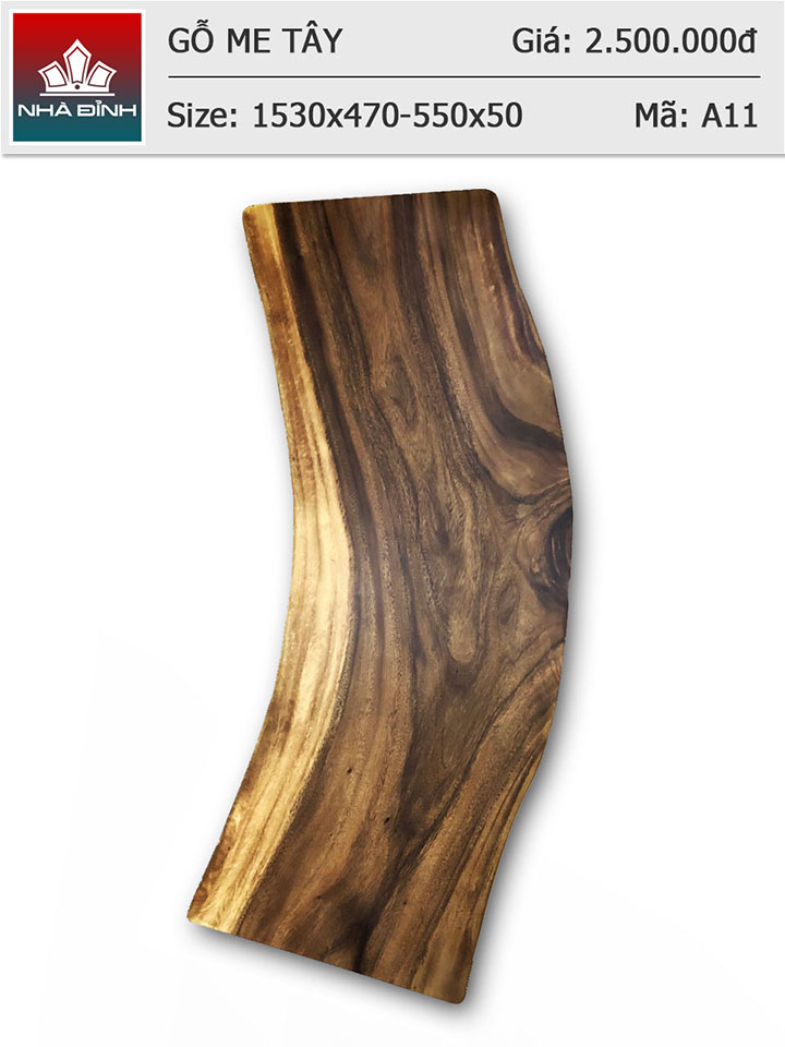 Mặt bàn gỗ Me Tây nguyên khối dài 1m53 rộng 47 - 55 dày 5 (cm)