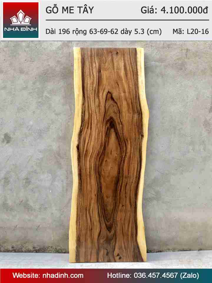 Mặt Bàn Gỗ Me Tây Nguyên Khối Dài 196 Rộng 63-69-62 Dày 5.3 (cm)
