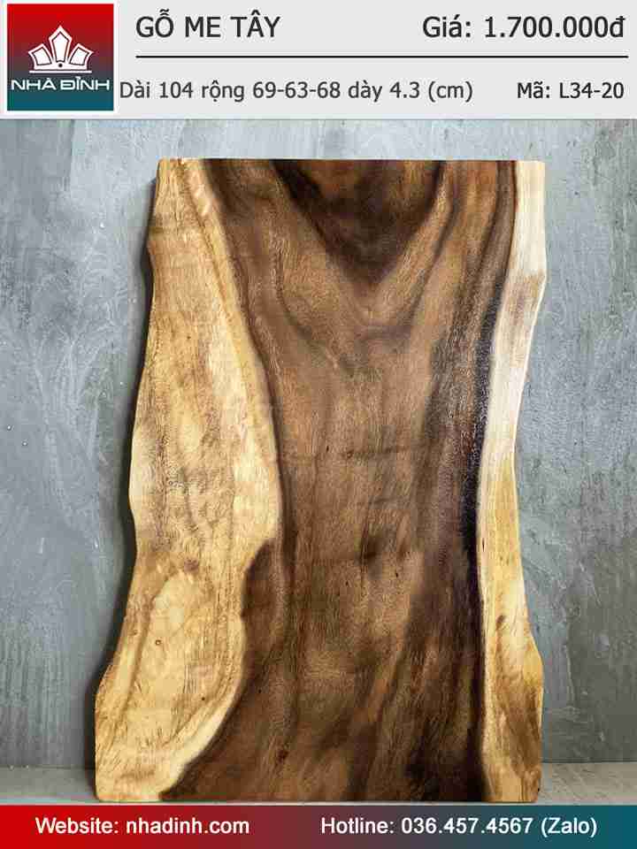 Mặt Bàn Gỗ Me Tây Nguyên Khối Dài 104 Rộng 69-63-68 Dày 4,3 (cm)