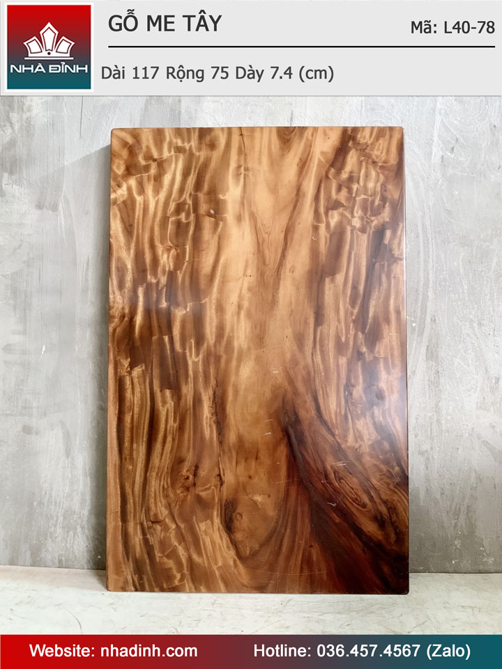Mặt Bàn Gỗ Me Tây Nguyên Khối Dài 117 Rộng 75 Dày 7,4 (cm)
