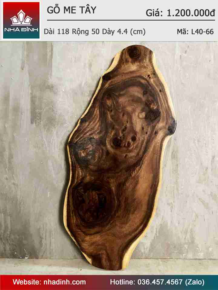 Mặt Bàn Gỗ Me Tây Nguyên Khối Dài 118 Rộng 50 Dày 4,4 (cm)
