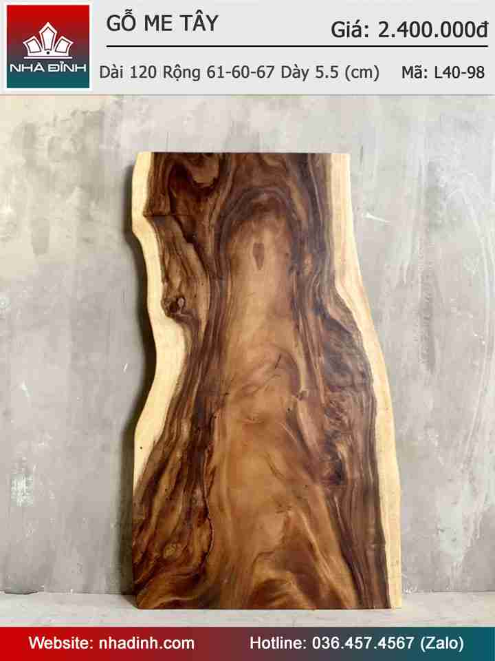 Mặt Bàn Gỗ Me Tây Nguyên Khối Dài 120 Rộng 61-60-67 Dày 5,5 (cm)
