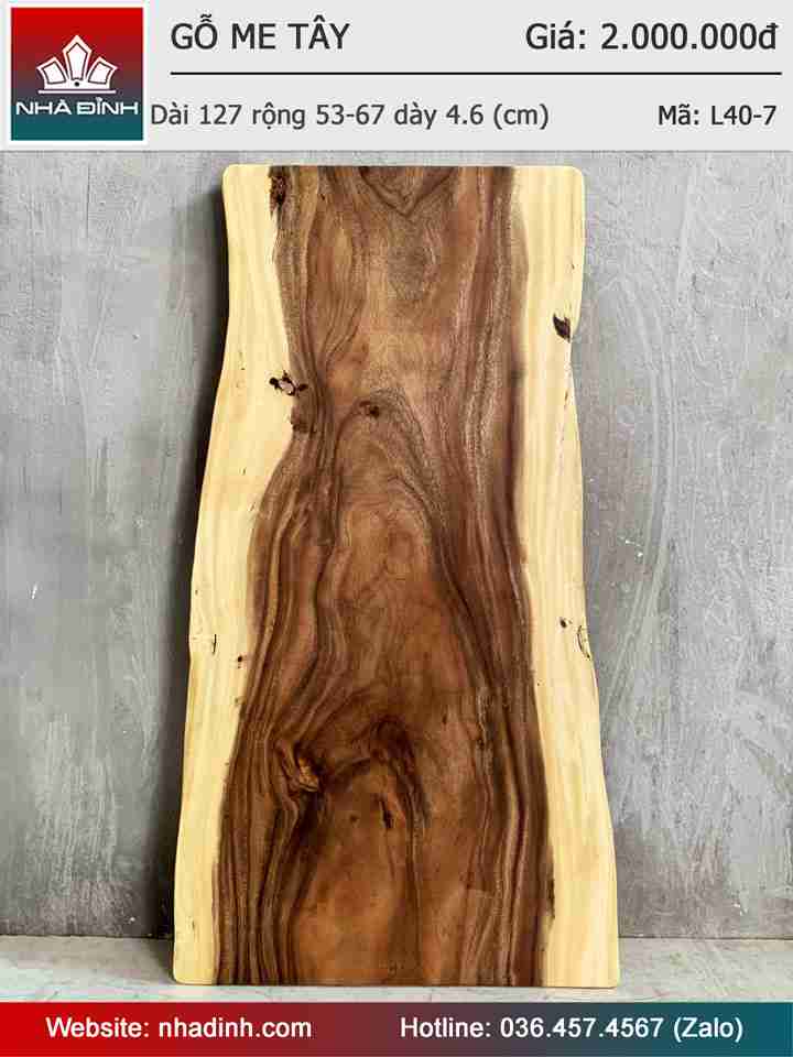 Mặt Bàn Gỗ Me Tây Nguyên Khối Dài 127 Rộng 53-67 Dày 4,6 (cm)