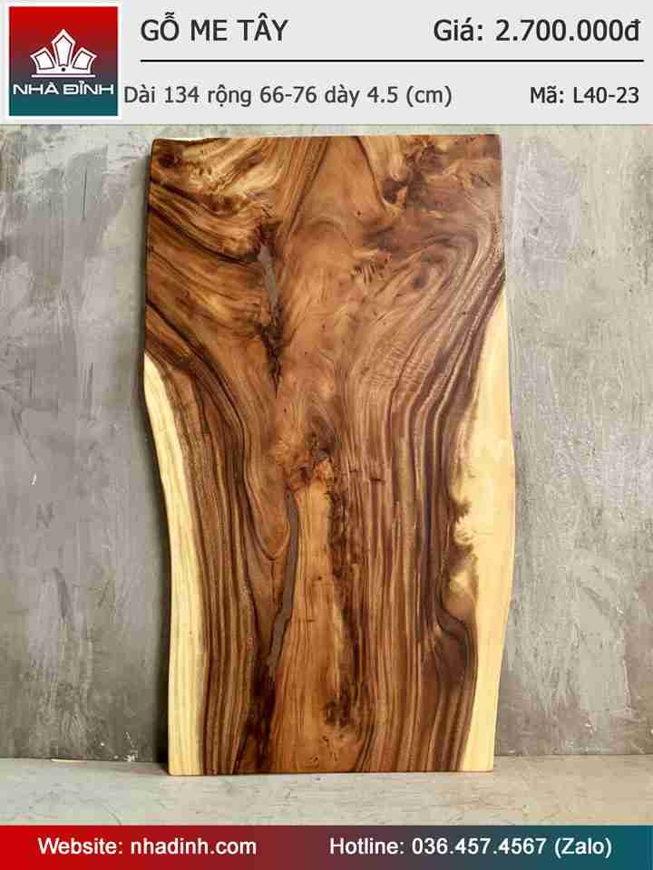 Mặt Bàn Gỗ Me Tây Nguyên Khối Dài 134 Rộng 66-76 Dày 4,5 (cm)