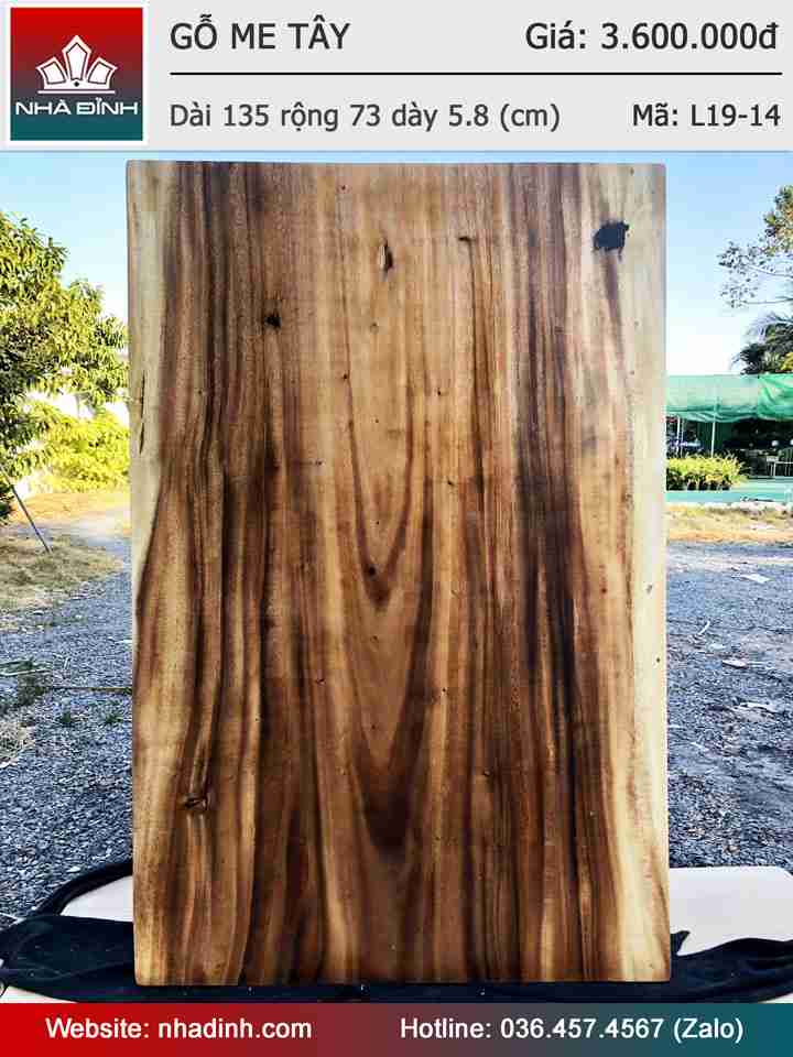Mặt Bàn Gỗ Me Tây Nguyên Khối Dài 135 Rộng 73 Dày 5,8 (cm)
