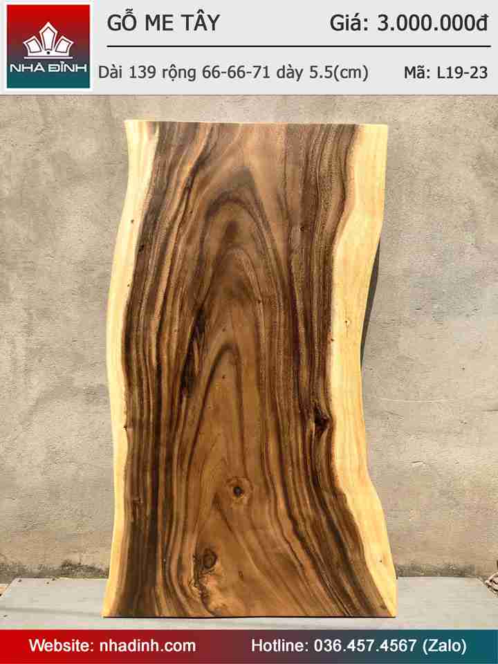 Mặt Bàn Gỗ Me Tây Nguyên Khối Dài 139 Rộng 66-66-71 Dày 5,5 (cm)