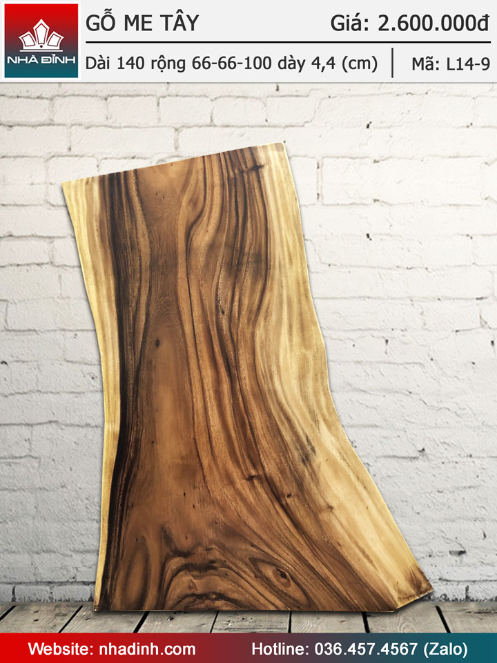 Mặt bàn gỗ Me Tây nguyên khối dài 140 rộng 66-66-100 dày 4,4 (cm)