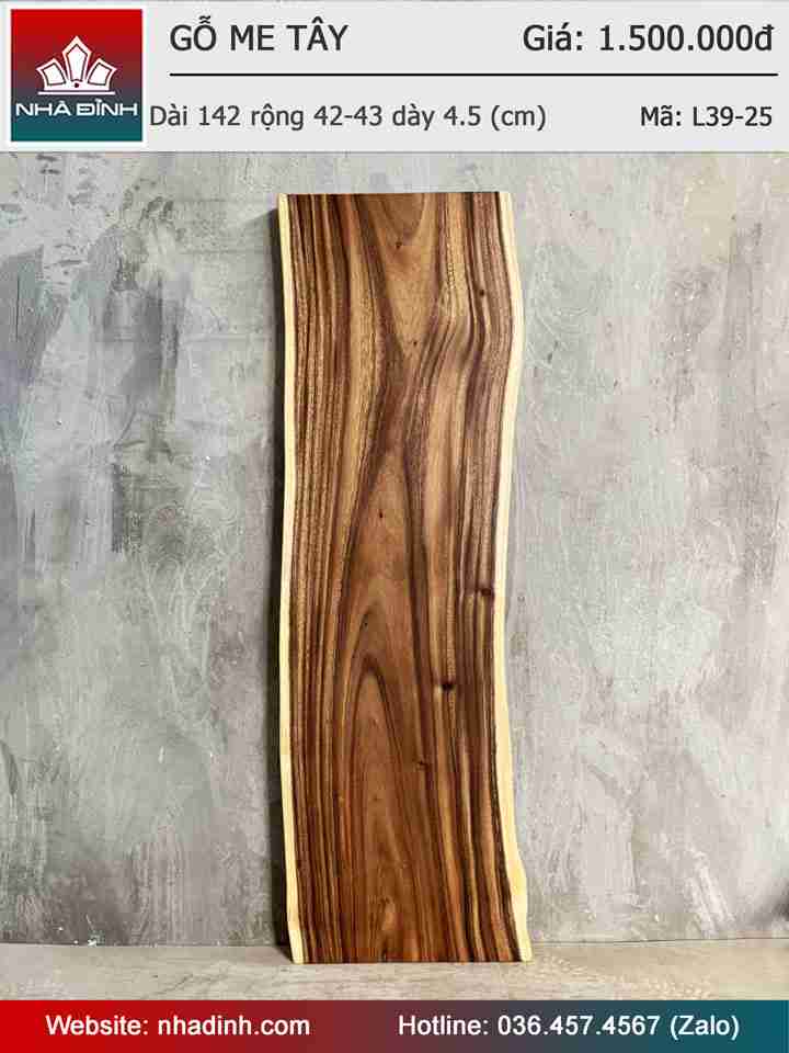 Mặt Bàn Gỗ Me Tây Nguyên Khối Dài 142 Rộng 42-43 Dày 4,5 (cm)