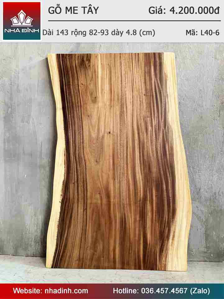 Mặt Bàn Gỗ Me Tây Nguyên Khối Dài 143 Rộng 82-93 Dày 4,8 (cm)