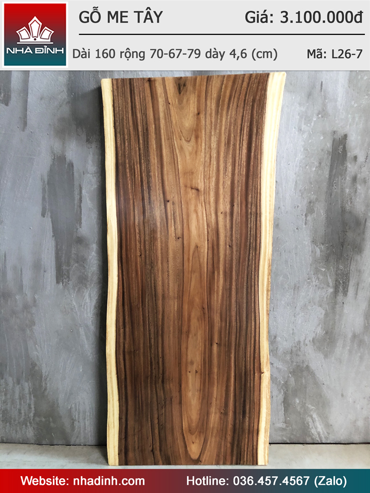 Mặt Bàn Gỗ Me Tây Nguyên Khối Dài 160 Rộng 70-67-79 Dày 4,6 (cm)