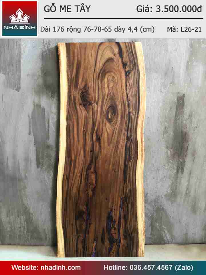 Mặt Bàn Gỗ Me Tây Nguyên Khối Dài 177 Rộng 73-66-60 Dày 4,6 (cm)