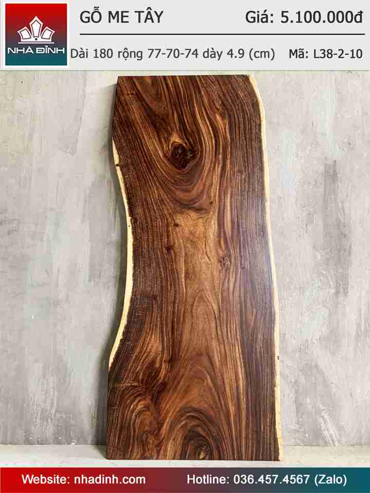 Mặt Bàn Gỗ Me Tây Nguyên Khối Dài 180 Rộng 77-70-74 Dày 4,9 (cm)