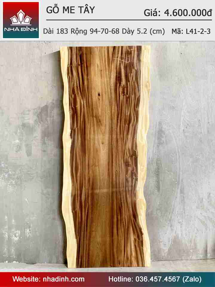 Mặt Bàn Gỗ Me Tây Nguyên Khối Dài 183 Rộng 94-70-68 Dày 5,2 (cm)