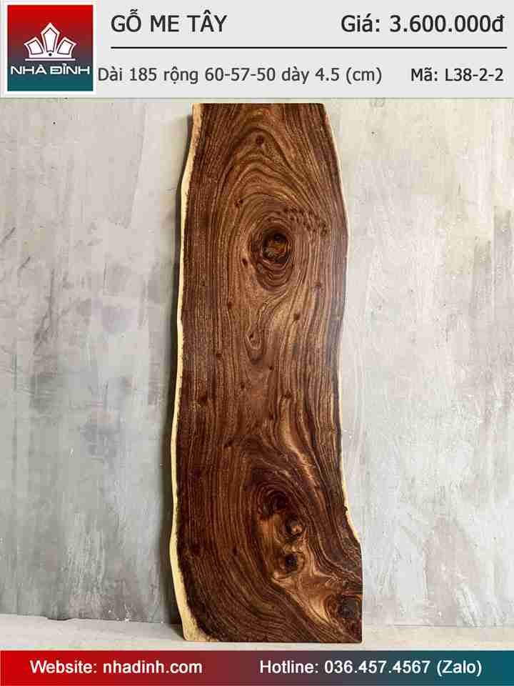 Mặt Bàn Gỗ Me Tây Nguyên Khối Dài 185 Rộng 60-57-50 Dày 4,5 (cm)