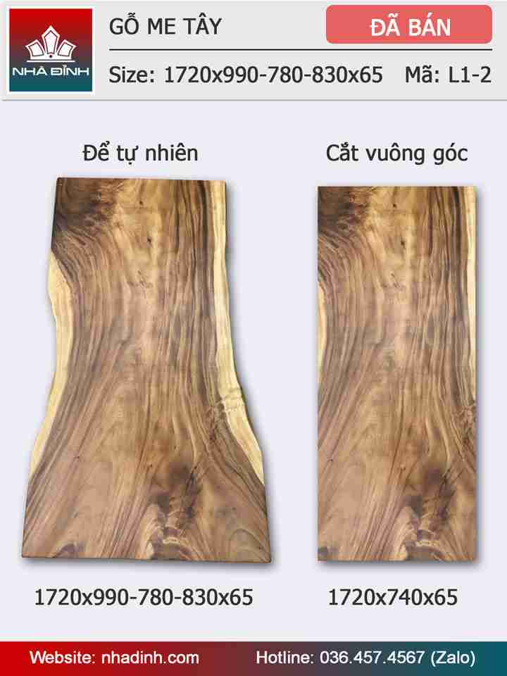 Mặt bàn gỗ Me Tây nguyên khối dài 1m72 rộng 99 - 78 - 83 dày 6,5 (cm)