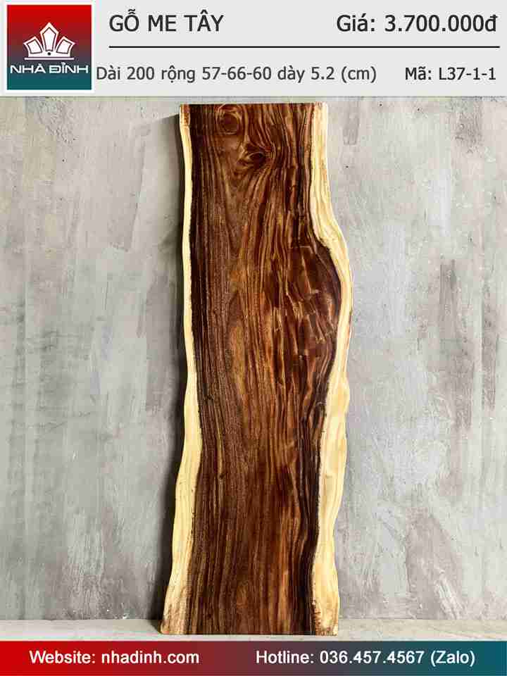 Mặt Bàn Gỗ Me Tây Nguyên Khối Dài 200 Rộng 57-66-60 Dày 5,2 (cm)