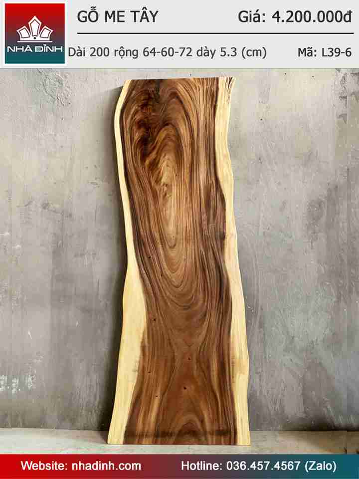 Mặt Bàn Gỗ Me Tây Nguyên Khối Dài 200 Rộng 64-60-72 Dày 5,3 (cm)