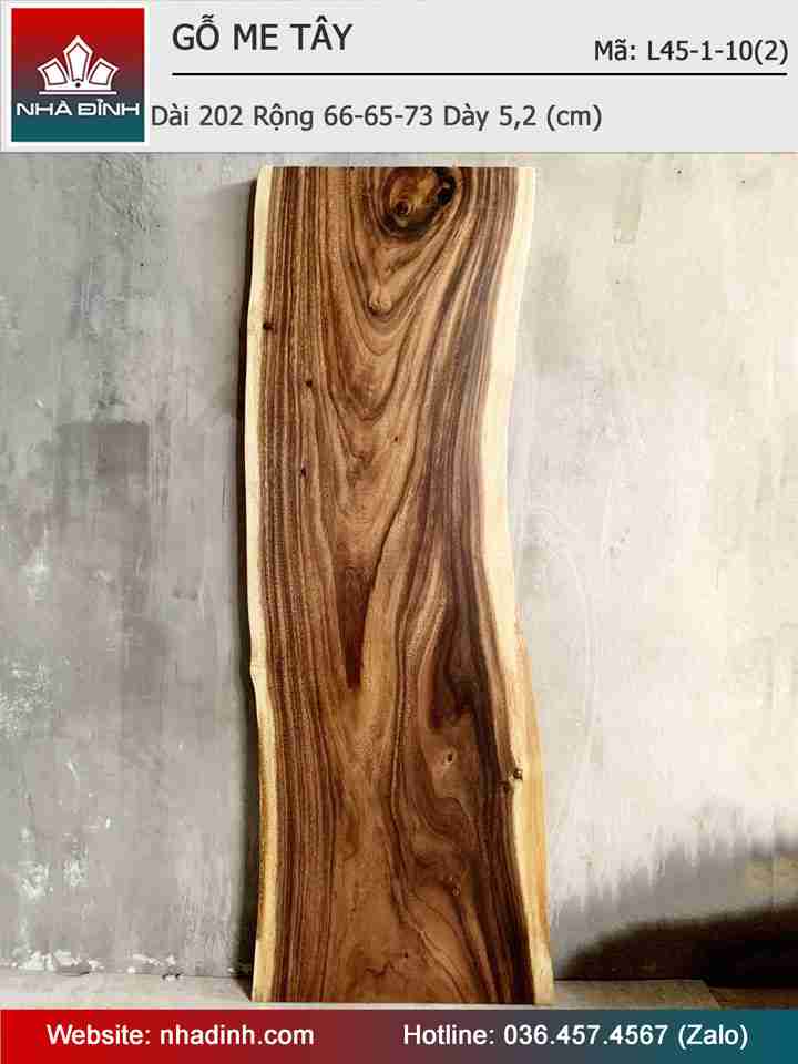 Mặt Bàn Gỗ Me Tây Nguyên Khối Dài 202 Rộng 66-65-73 Dày 5,2 (cm)