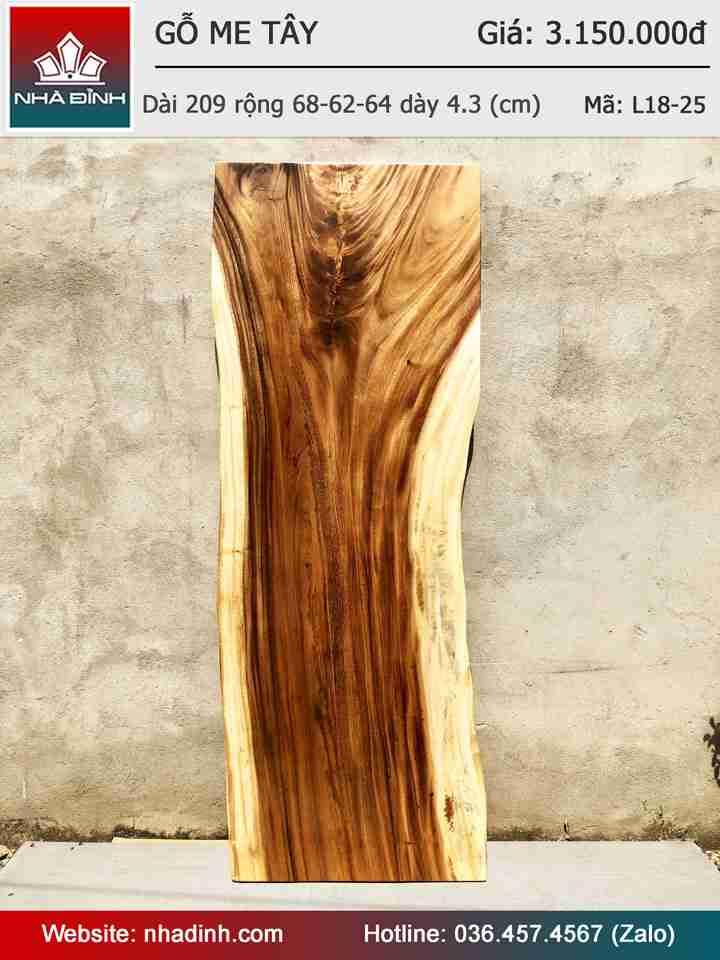 Mặt Bàn Gỗ Me Tây Nguyên Khối Dài 209 Rộng 68-62-64 Dày 4,3 (cm)