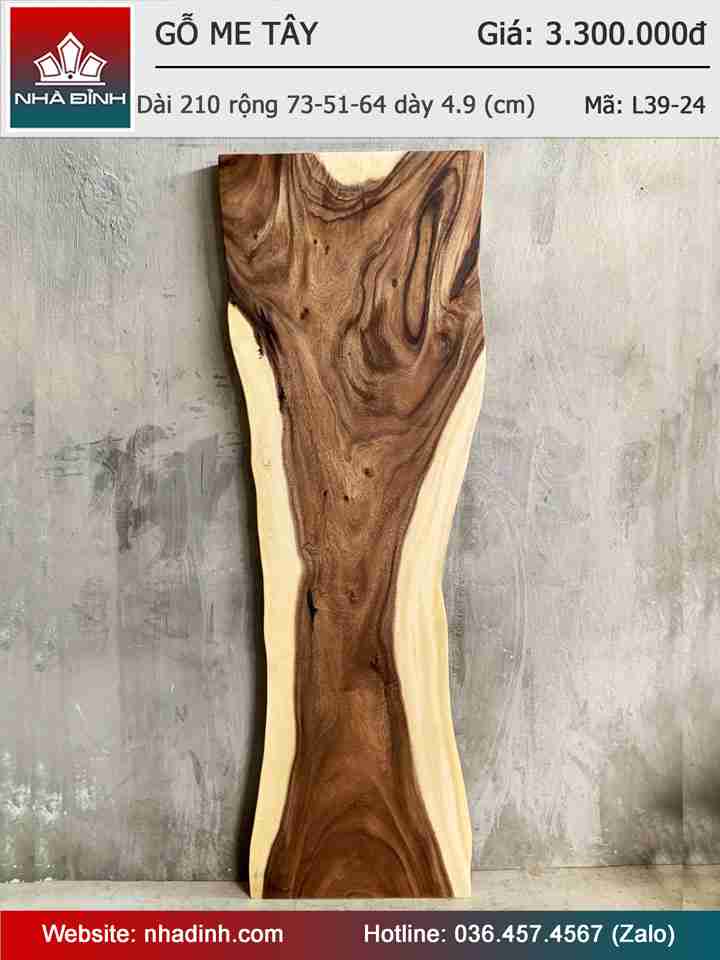 Mặt Bàn Gỗ Me Tây Nguyên Khối Dài 210 Rộng 73-51-64 Dày 4,9 (cm)