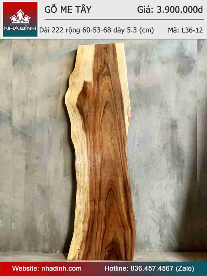 Mặt Bàn Gỗ Me Tây Nguyên Khối Dài 222 Rộng 60-53-68 Dày 5,3 (cm)