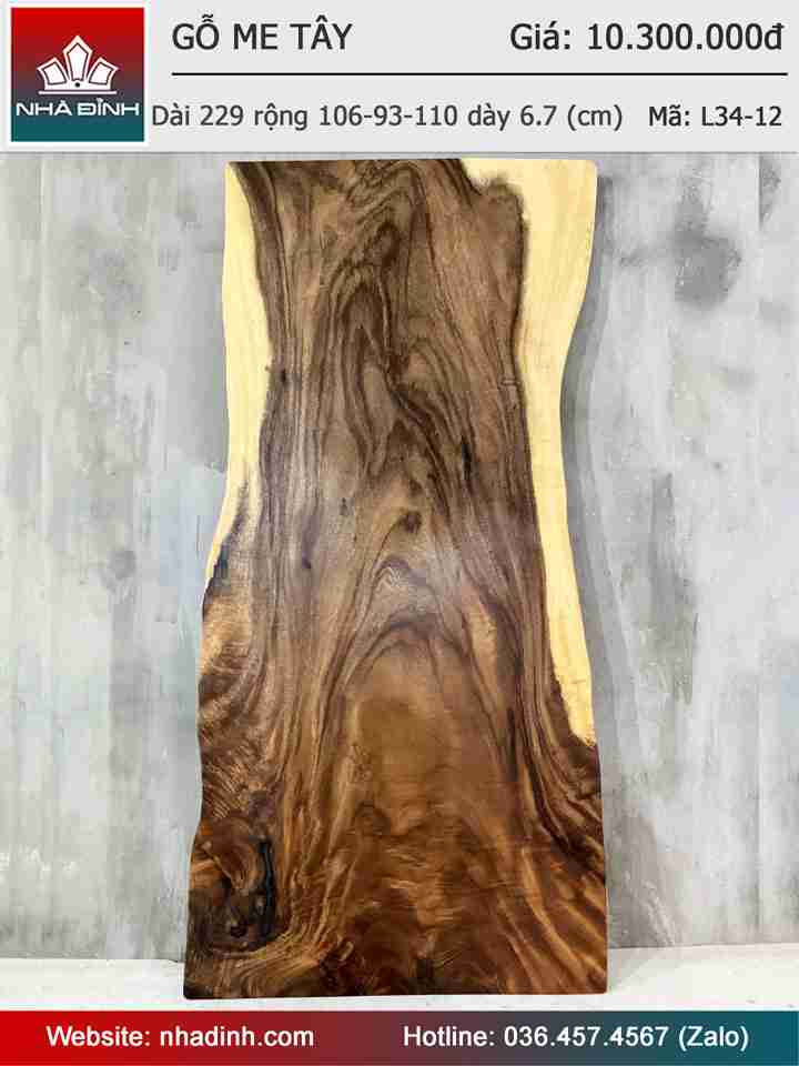 Mặt Bàn Gỗ Me Tây Nguyên Khối Dài 229 Rộng 106-93-110 Dày 6,7 (cm)
