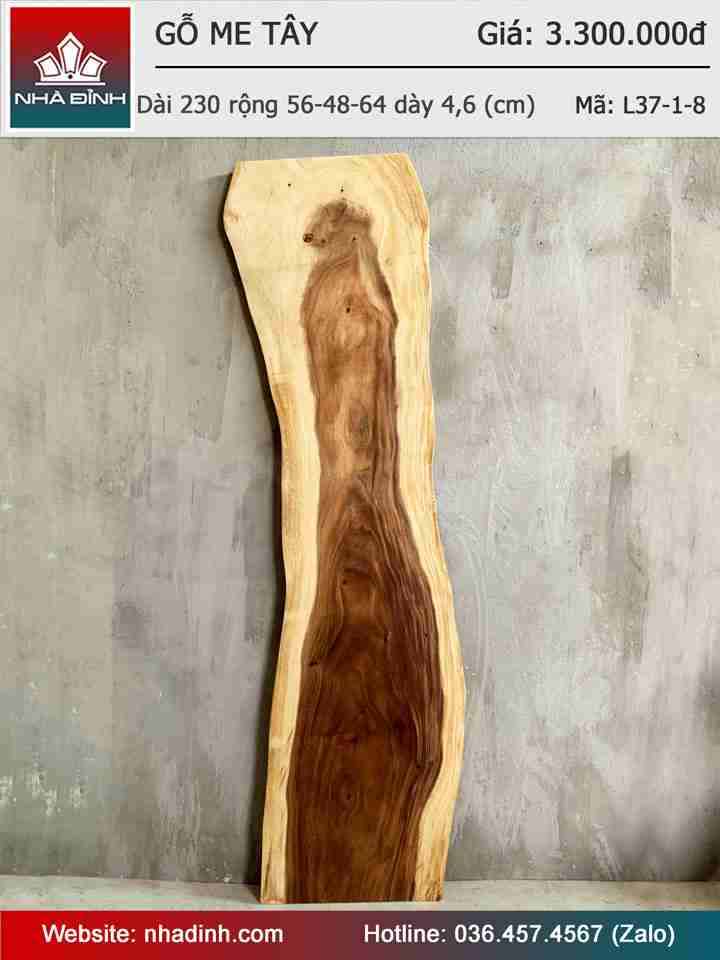 Mặt Bàn Gỗ Me Tây Nguyên Khối Dài 230 Rộng 56-48-64 Dày 4,6 (cm)